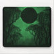 Grungy and cool Dark Forest Eclipse Mousepad in green featuring a quiet forest scene with a lunar eclipse. This digital art mousepad will look great on any desktop. Customise with your own text.
