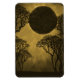 Grungy and cool Dark Forest Eclipse Premium Magnet in gold featuring a quiet forest scene with a lunar eclipse. This digital art magnet will look great anywhere you stick it! Customise with your own text.