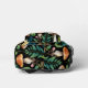 Mushroomcore artwork features forest flora and fungi in a pattern style against a black background. Flower blooms, ferns, toadstool mushrooms, and more in shades of green, brown, orange, pink, and purple, overall on the warmer side. Dark cottagecore or goblincore aesthetic.