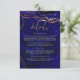 Modern trendy wedding design. Watercolor geode with elements of digital art, shades of deep blue, purple, rose gold and gold (gold is not real gold but colour), black. Elegant calligraphy. Geometric elements. Bold, modern, contrast, saturated, remarkable, unique.