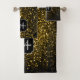 Dark gold yellow faux glitter sparkles Monogram Bath Towel Set