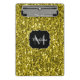 Dark gold yellow faux glitter sparkles Monogram Mini Clipboard