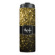 Dark gold yellow faux glitter sparkles Monogram Thermal Tumbler