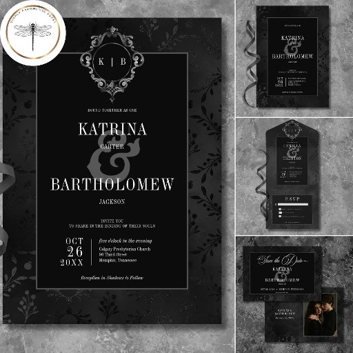 Dark Gothic Black Floral Damask Satin WeddingDesigned by Kathe Santillo