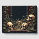 Dark Gothic Elegance. Stunning archway supported by two majestic pillars finished in a dark finish. These pillars are lushly covered in ivy, the green leaves of which provide a vibrant contrast to the dark materials. At the base of the archway lie three realistically depicted human skulls surrounded by more ivy. These elements add a deeper meaning to the design and are a reminder of the transience of life and the strength of love that endures even beyond death.