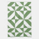 Dark Grass Green Geometric Deco Cube Pattern Tea Towel