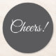 Add a refined finishing touch to your celebration with this elegant dark gray wedding coaster. Featuring a rich charcoal background and a beautifully flowing script “Cheers!”, this design brings a sophisticated yet celebratory feel to your reception.