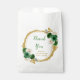 Beautiful birthday party favor bag with a dark green and gold faux glitter frame with floral flower arrangements. Perfect for a birthday party. The words can be changed to suit your own details or requirements