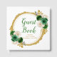 Dark Green and Gold Elegant Flowers Birthday Party Guest Book