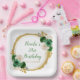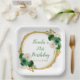 Beautiful birthday party plate with a dark green and gold faux glitter frame with floral flower arrangements. Perfect for a birthday party. The words can be changed to suit your own details or requirements