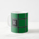 Dark Green and Grey Custom Single Initial Striped Coffee Mug