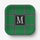 Dark Green and Grey Custom Single Initial Striped Paper Plate