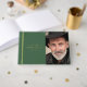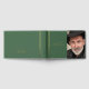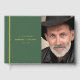In Loving Memory, Funeral / Celebration of Life photo guestbook, with a simple, minimal, and elegant design with a soft velvety hardcover in deep green, and real foil in stripes, and text details. Ability to change "In loving memory" to "Celebrating the Life of" by using the template text box. Choose from three size options and three foil colours: gold, silver, or rose gold. Personalise it with your loved one information on the front and spine and add on the back any message you like.