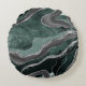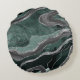 Dark Green Black Marble Agate Silver Glitter Glam Round Cushion