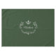 Elegant dark green coloured tablecloth with graphics of a silver tone flourish and crown text area and custom text. Personalise the text to this lovely addition to your dining table.