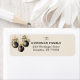Top off your mailing with these chic and elegant return address labels featuring watercolor Christmas Ornaments and Baubles and Garland with leaves and bows in elegant shades of gold black and shades of green .