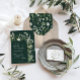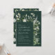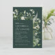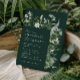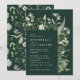 Budget natural bohemian botanical modern elegant foliage stylish wedding invitation card. Beautiful handprinted dried botanical floral watercolors and script text. Modern on trend dark emerald green design.
