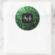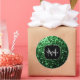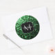 Dark green faux glitter sparkles Monogram Classic Round Sticker