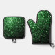 Dark green sparkles faux glitter bling Oven Mitt & Pot Holder Set. Beautiful girly glamourous shiny glitters sparkles. Photo of sparkles, not real glitter! Faux sparkles! No messy glitter to the touch!