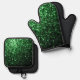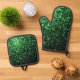 Dark green faux glitter sparkles oven mitt & pot holder set