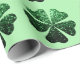 Dark Green glitter sparkles Shamrocks Clovers on custom light green gift wrapping paper.
