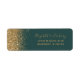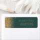 The left-hand edge of this elegant modern wedding return address label features a gold faux glitter design. The customisable text combines pale gold-coloured handwriting, copperplate and italic fonts on a dark green background.