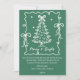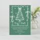 Make a bold statement this holiday season with this sophisticated, illustrated Christmas card. The design features crisp white hand-drawn line art—a whimsical tree surrounded by a garland of bows—set against a stunning deep sage green background. The contrast is dramatic and modern, giving the card a gorgeous, high-end feel. The classic greeting, "Merry & Bright," delivers a simple, cheerful wish. This unique card is perfect for families who want a minimalist, bold, and artfully illustrated design.