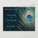 Dark Green Peacock Feathers Save the Date Announcement Postcard
