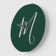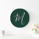 Dark Green Plain Elegant Modern Own Name Monogram Large Clock