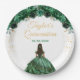 Dark Green Princess Floral Quinceañera Paper Plate