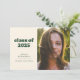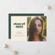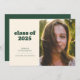 This off-white and dark green retro inspired graduation announcement puts the focus on your grad with a single photo on the front as well as the back. The back of the announcement also has space to write a short message or update.