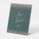 Dark Green Rose Gold Glitter Wedding Love Is Sweet Pedestal Sign