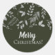 Dark Green & Silver Leaves Botanical Holiday Classic Round Sticker