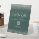 Dark Green Silver Wedding Cards Gifts QR Code Pedestal Sign