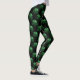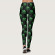 Dark Green sparkle Shamrock Clover pattern black Leggings