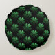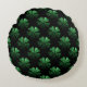 Dark Green sparkly Shamrock pattern on black Round Cushion