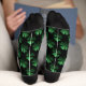 Dark Green sparkly Shamrock pattern on black Socks. Dark Green glitter sparkles Shamrock Clover on black. Saint Patrick's day gift: five leaf shamrock clover with dark green sparkles glitters. Photo of sparkles glitter!