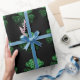Dark Green sparkly Shamrock pattern on black Wrapping Paper