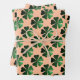 Dark Green sparkly Shamrock pattern on peach Wrapping Paper Sheet