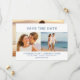 Modern and fresh design showcases three of your photographs. Two smaller photos create a band through the centre of your save the date invitation. A full-size photo covers the entire back of the save the date card. The slab serif text gives the card its modern and hip vibe. All of the text can be edited. Very easy template to use.
