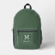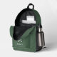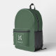 Back back in greens with name and monogram in white, outlined with rounded square in white.