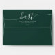 This dark green return address envelope features a graceful white script surname paired with a refined serif font, elegantly centred on the flap. The deep forest green shade adds richness and sophistication, while the crisp white lettering creates a clean, striking contrast. Perfect for weddings, holiday cards, winter events, or refined everyday correspondence. Fully customisable with your personal address for a polished and timeless look.