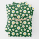 Dark Green with Yellow White Daisy Flower Pattern Wrapping Paper Sheet