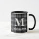 Dark Dray and Black Plaid with Monogram Name Mug