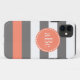 Dark grey and white stripes with a coral circle and space for a monogram.