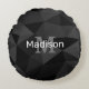 Dark grey black geometric mesh pattern Monogram Round Cushion