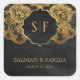 Dark Grey Gold Foil Lace Monogram Wedding Favour Square Sticker