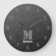 Dark Grey Gradient Geometric Mesh Pattern Monogram Large Clock