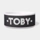 dark grey pet bowl for your pet dog or cat's food or water. This example has Toby written on it but it can be changed to the name of your preference. Other colours are available in the store.