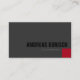 Professional Custom Dark Grey Profile Card with black name text and lighter grey text for other information. Two side print, where the background colour is changeable. On the right bottom corner is an eye catching red square which repeats itself at the back side too. Below are other variations of this design.